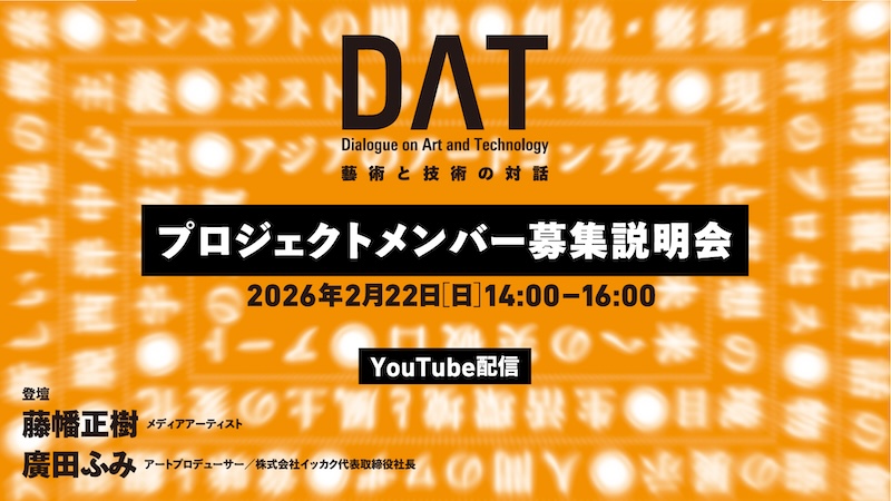 2026年2月22日より、本プロジェクトの育成対象者として国内外で展覧会をつくり上げる「DATプロジェクトメンバー(育成対象者)」の募集を開始。募集・選考の詳細についてオンライン説明会を開催します。